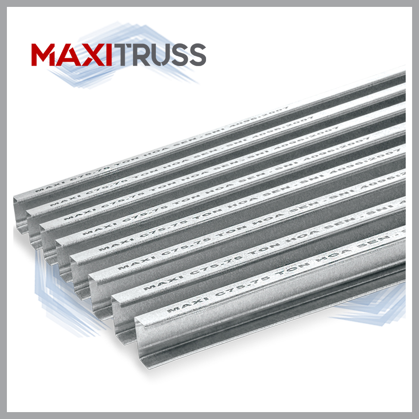 Maxi Truss adalah produk kanal c baja ringan inovasi terbaru dari Karya Wirama. Bahan baku yang di gunakan untuk memproduksi Maxi Truss yakni Ton Hoa Sen yang juga di pakai untuk Wirama Truss. Maxi Truss juga di produksi dengan mesin Roll Forming Hydraulic Press sehingga kanal c baja ringan Maxi Truss lebih presisi dan juga kuat.