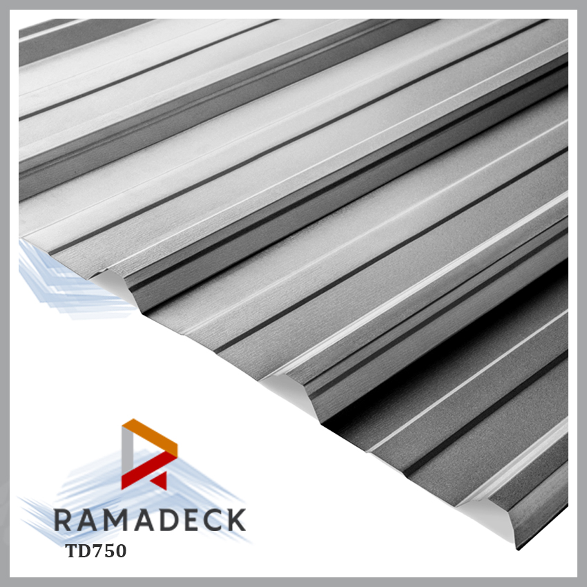 Ramadeck TD 750 merupakan penutup atap dan dinding produksi Karya Wirama dengan desain 5 tulangan. Ramadeck TD 750 di buat menggunakan bahan baku coil terbaik yang membuat ketebalannya selalu konsisten.  Coil atau bahan baku Ramadeck TD 750 terdiri dari komposisi baja lembar lapis alumunium dan seng.